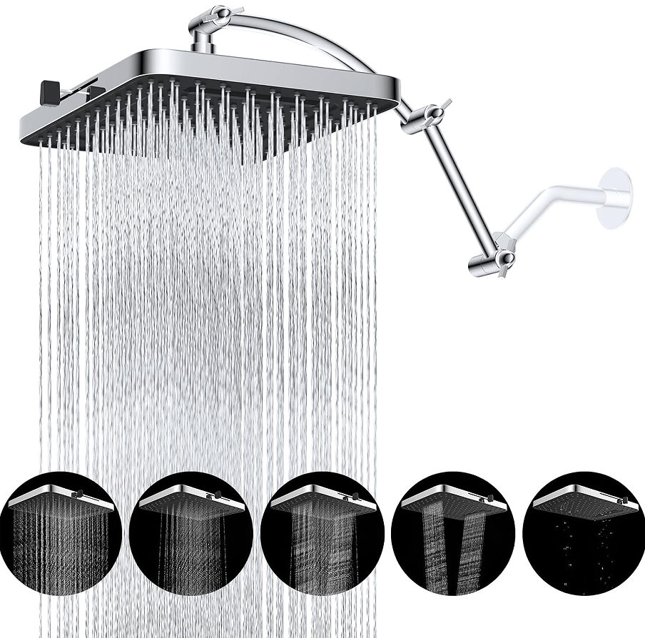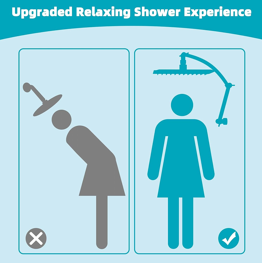 Square Multi-function Rain Shower Head – Extended arm structure for flexible space adaptation
